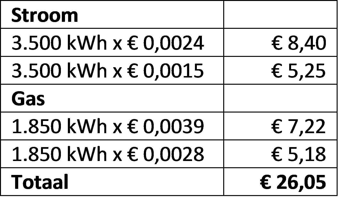 U kunt aan de hand van uw jaarverbruik berekenen hoeveel u hoger uit komt in 2014. Hieronder hebben wij een voorbeeld genoteerd, gebaseerd op een gemiddeld verbruik van 3.500 kWh en 1.850 m3.